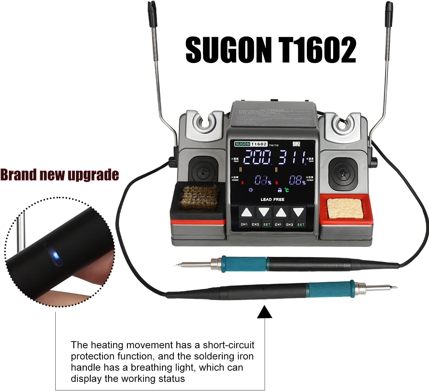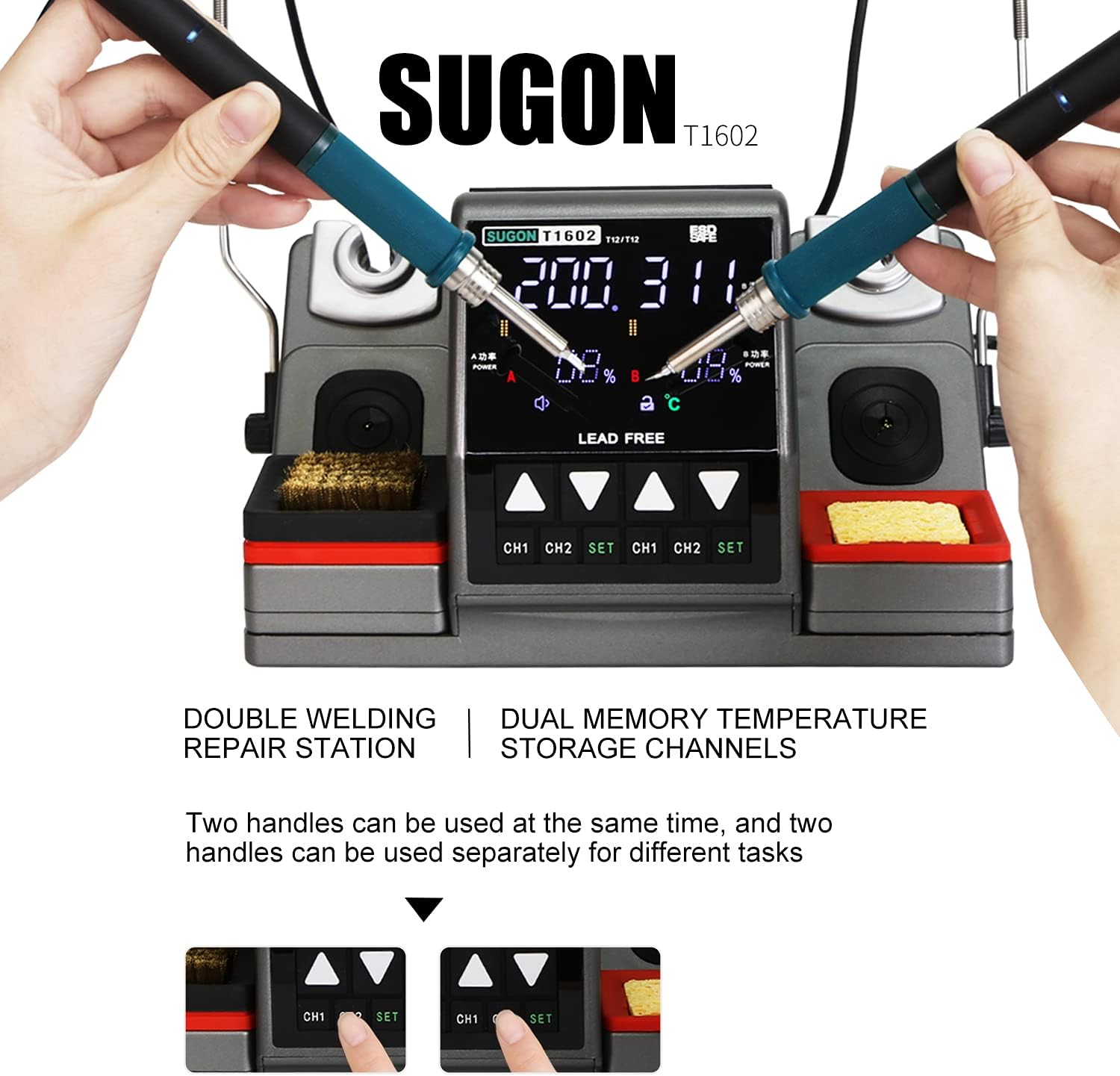 SUGON T1602 6 T12 Lehimleme Demir Uçlu 110V Lehimleme İstasyonu, 2 Dijital Lehim Demir İstasyonu, 1 ° F-842 ° F Ayarlanabilir Sıcaklık C / F, Otomatik Uyku ve Kalibrasyon Desteği, 0 Bellek Depolama